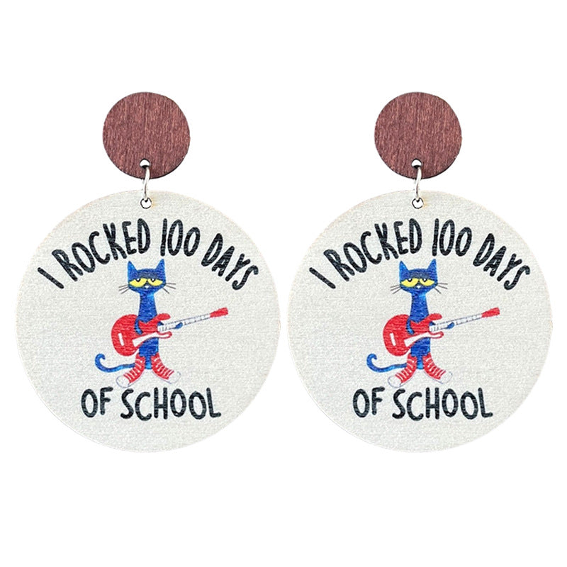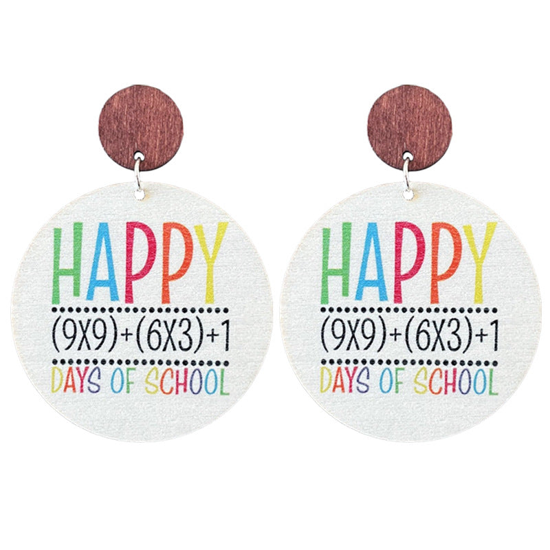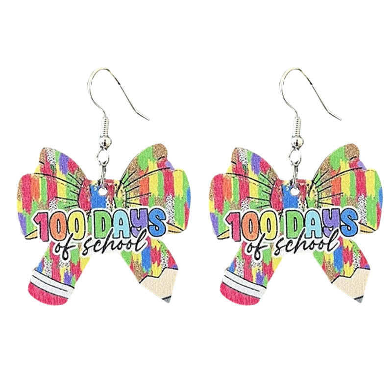 Wholesale 2 pairs/pack Wooden teacher-themed text and bowknot earrings