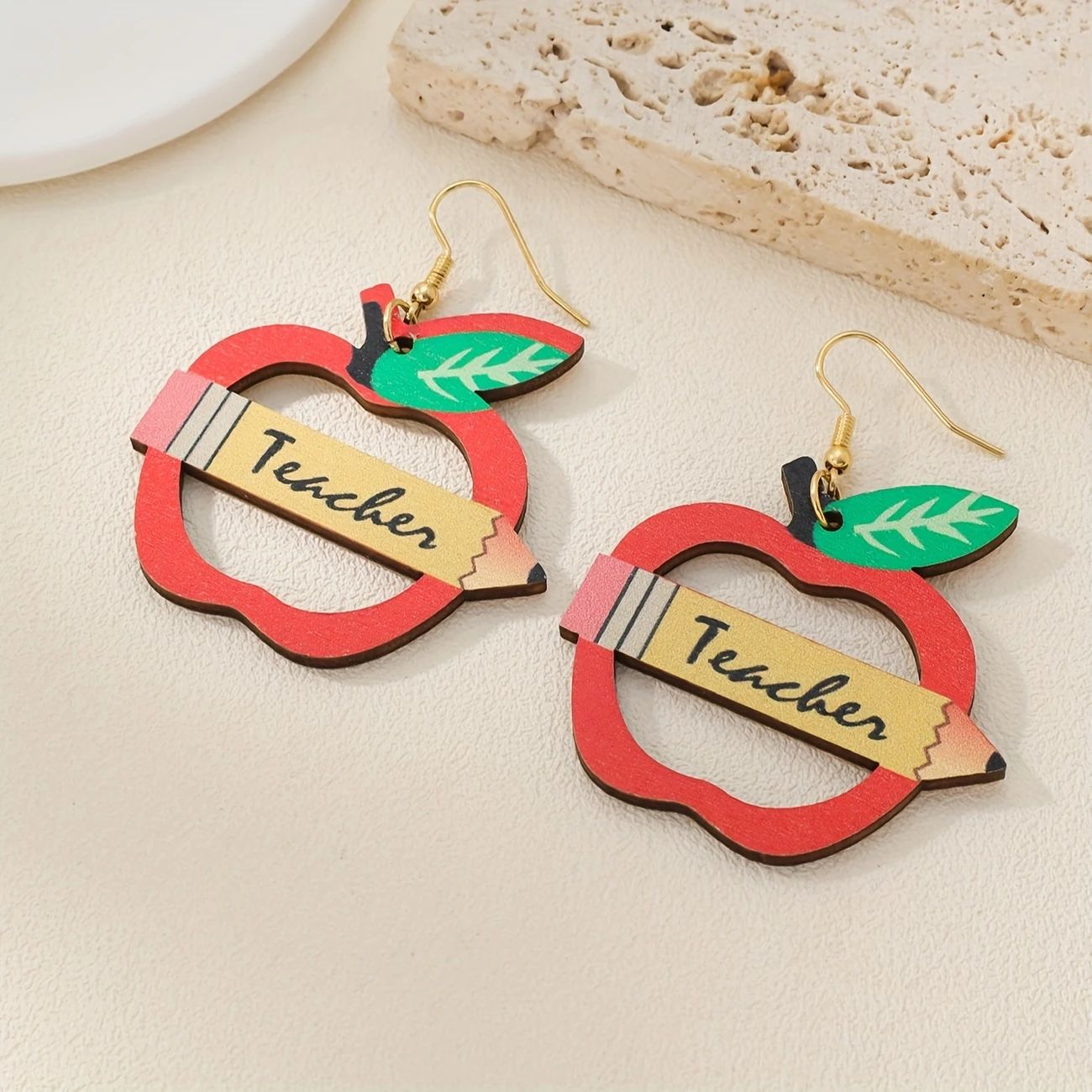 Wholesale Apple-Shaped Pencil Design Teacher's Day Earrings
