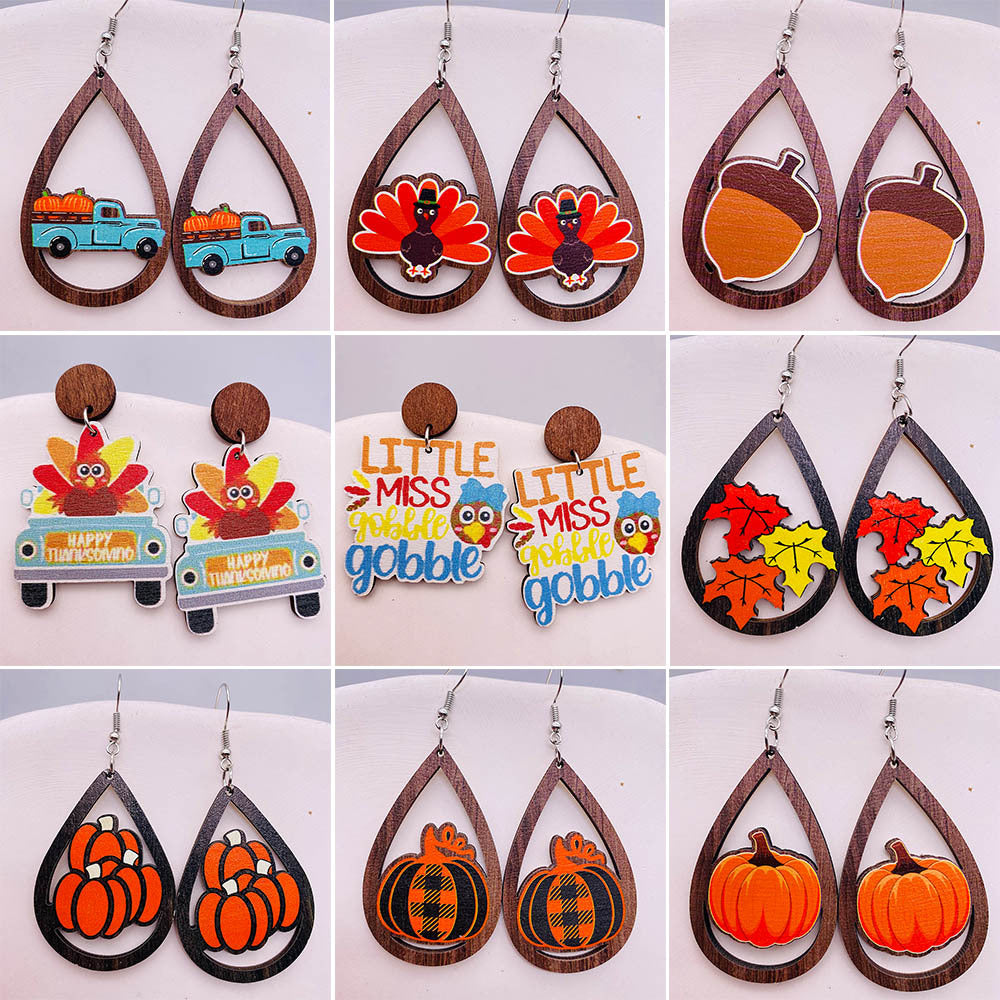 Wholesale Thanksgiving wooden earrings pumpkin turkey car water drop pendant earrings