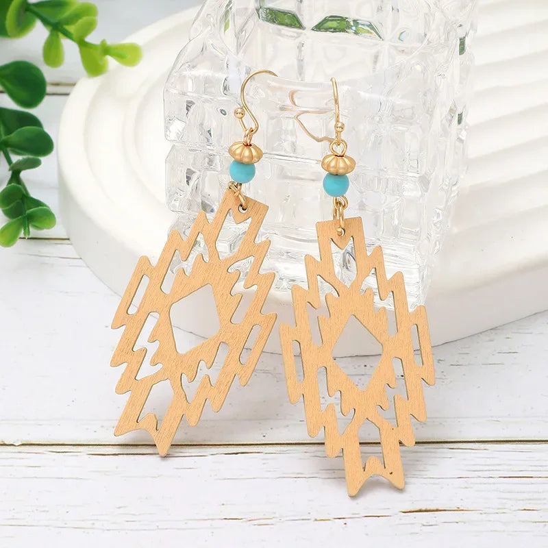 Wholesale Bohemian Hollow Wooden Earrings Diamond Pendant Earrings