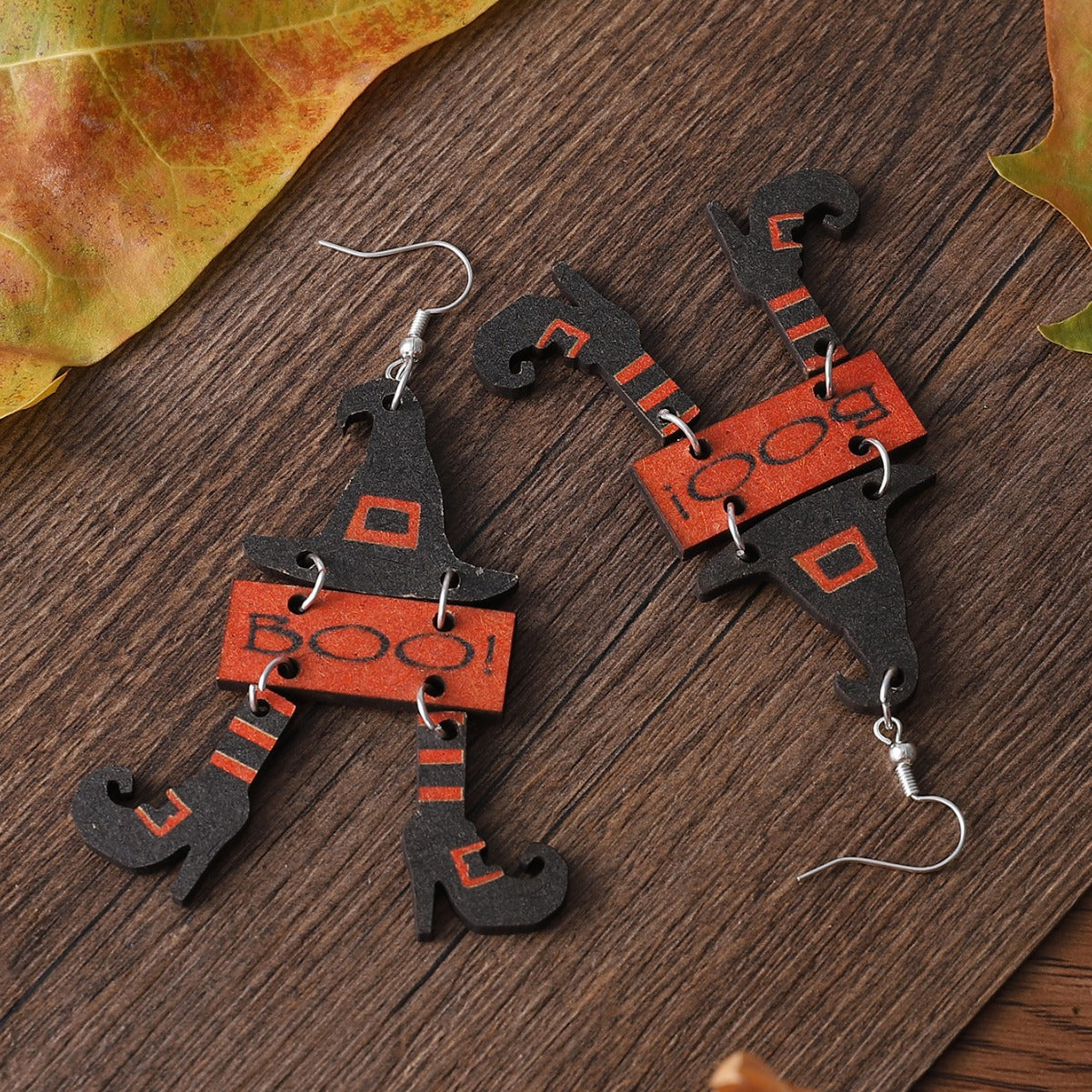 Wholesale Gothic Wind Witch Hat Boots Triple ing Pendant Wooden Double-sided Earrings