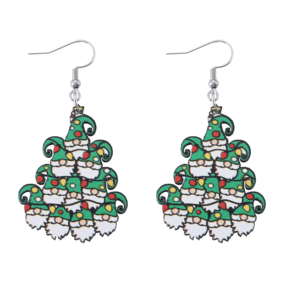 Wholesale hristmas lights dwarf Christmas tree pendant earrings wooden double-sided earrings