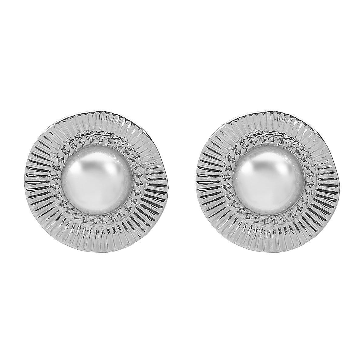 Wholesale Pleated Inlaid Pearl Earrings Ring Necklace Elegant Niche Geometric Alloy