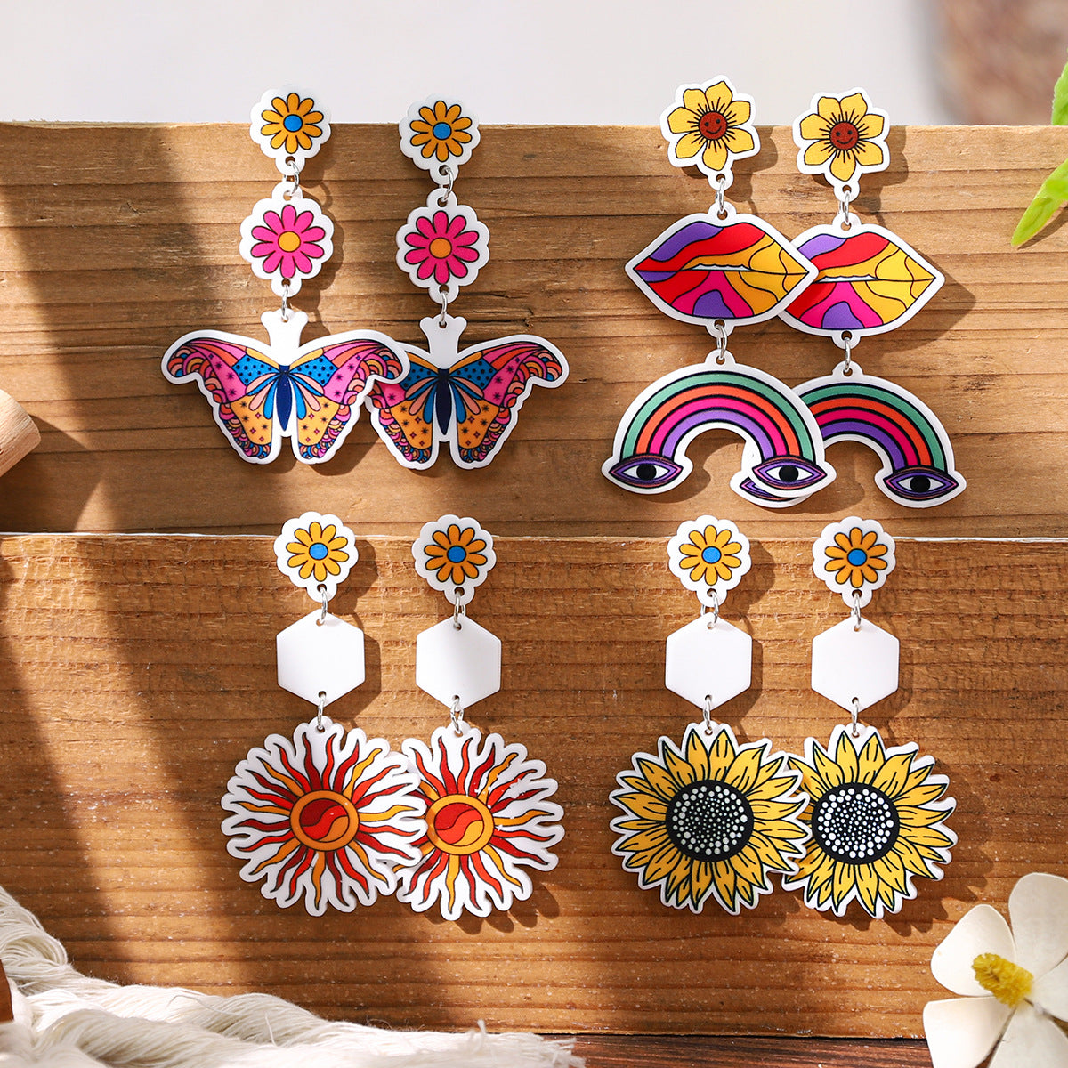 Wholesale Brilliant painted acrylic butterfly contrast color earrings