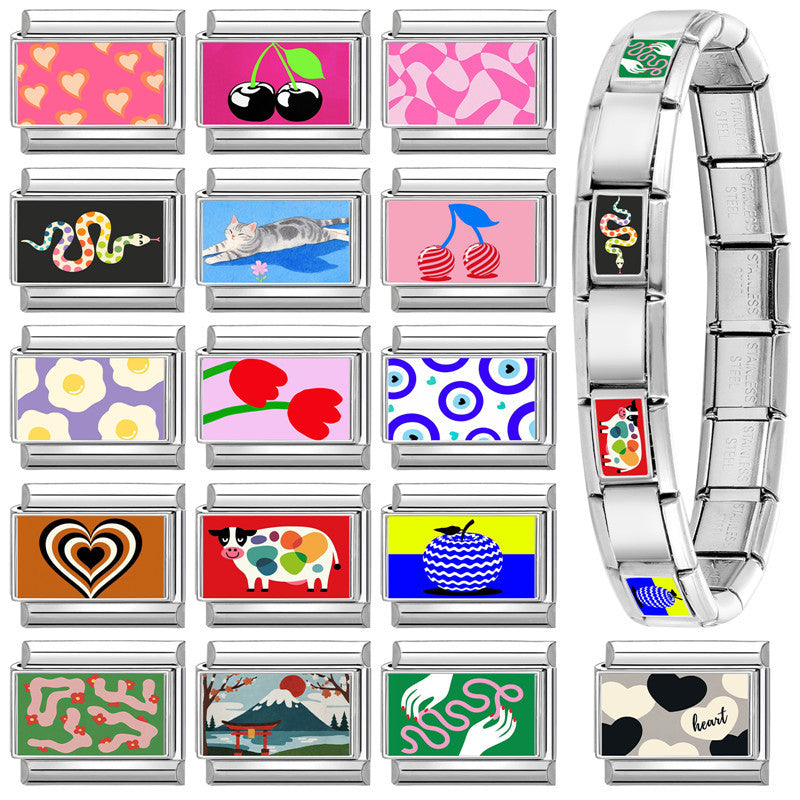 Wholesale 9mm Italian Charm Starter Bracelets DIY square Single Section Creative Stainless Steel Composable Bracelet
