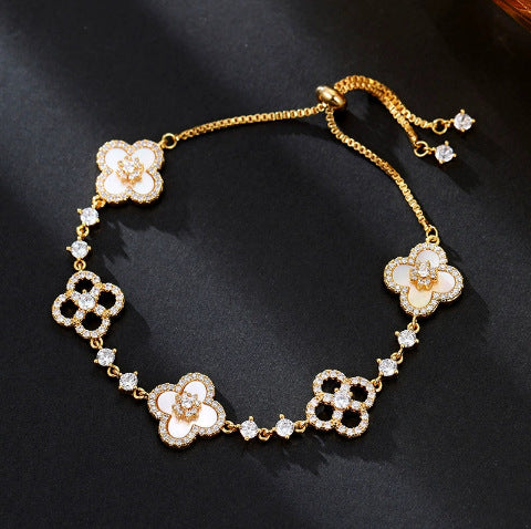 Wholesale Mother-of-pearl flower four-leaf clover zircon flower bracelet