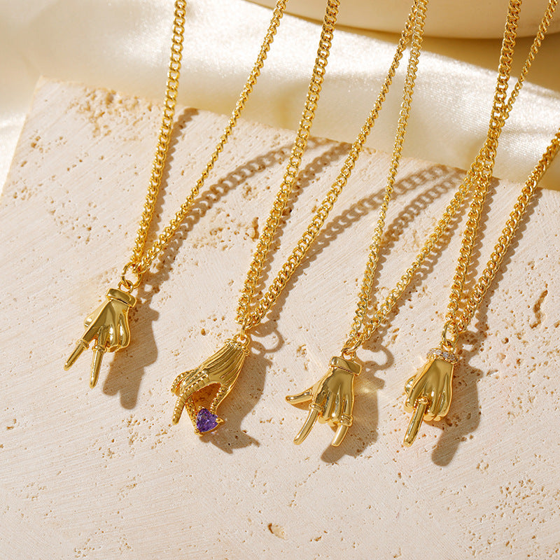 Wholesale Stainless steel gesture LOVE copper plated 18k micro set zircon clavicle chain