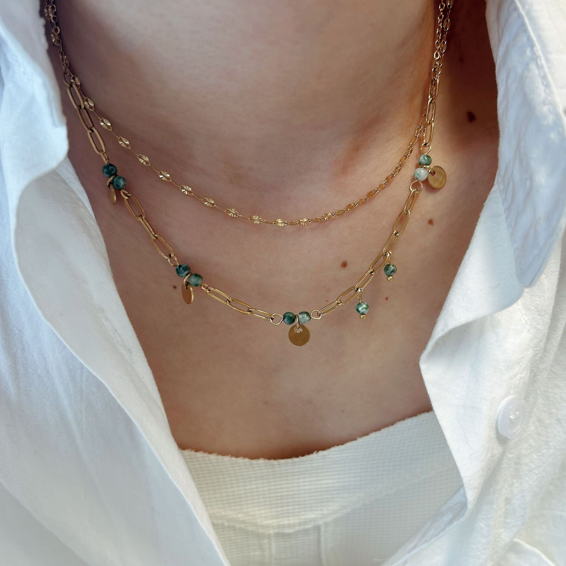 Wholesale Stainless Steel Natural Stone African Turquoise Beaded Necklace