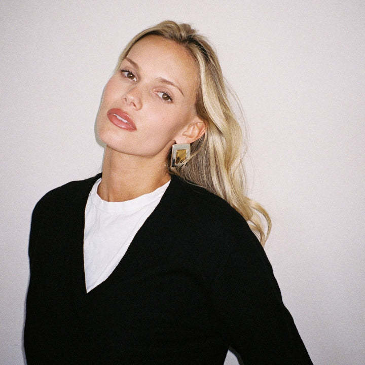 Wholesale 18K gold and silver two-color geometric rectangular exaggerated large earrings