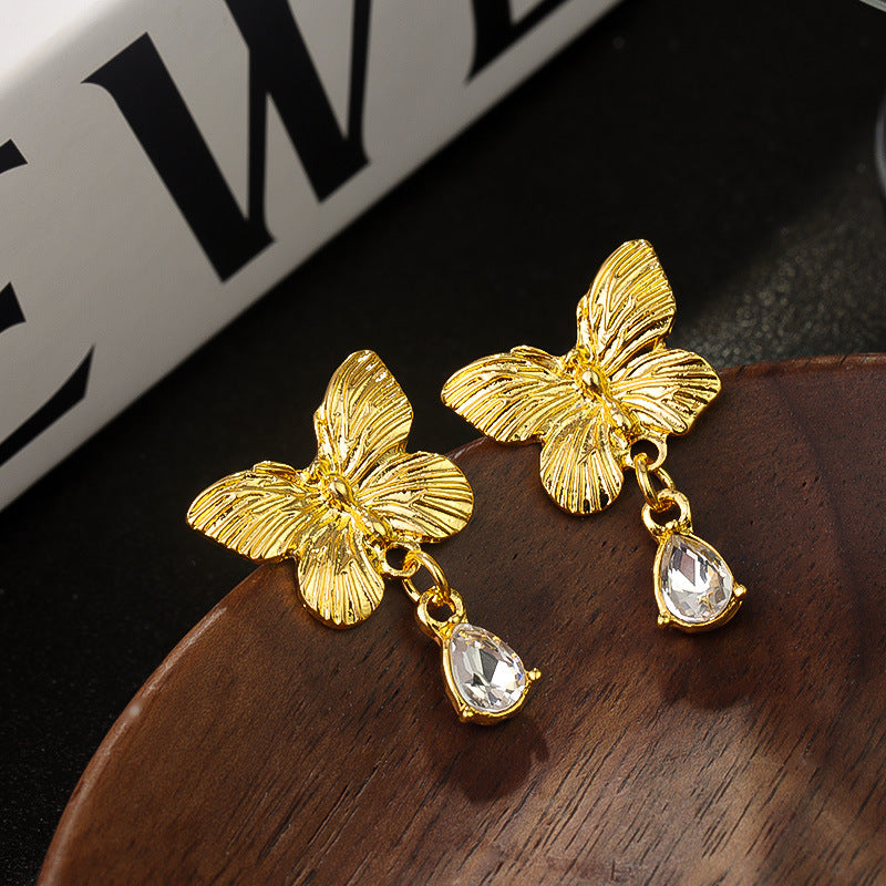 Wholesale Butterfly Diamond Embedded Earrings