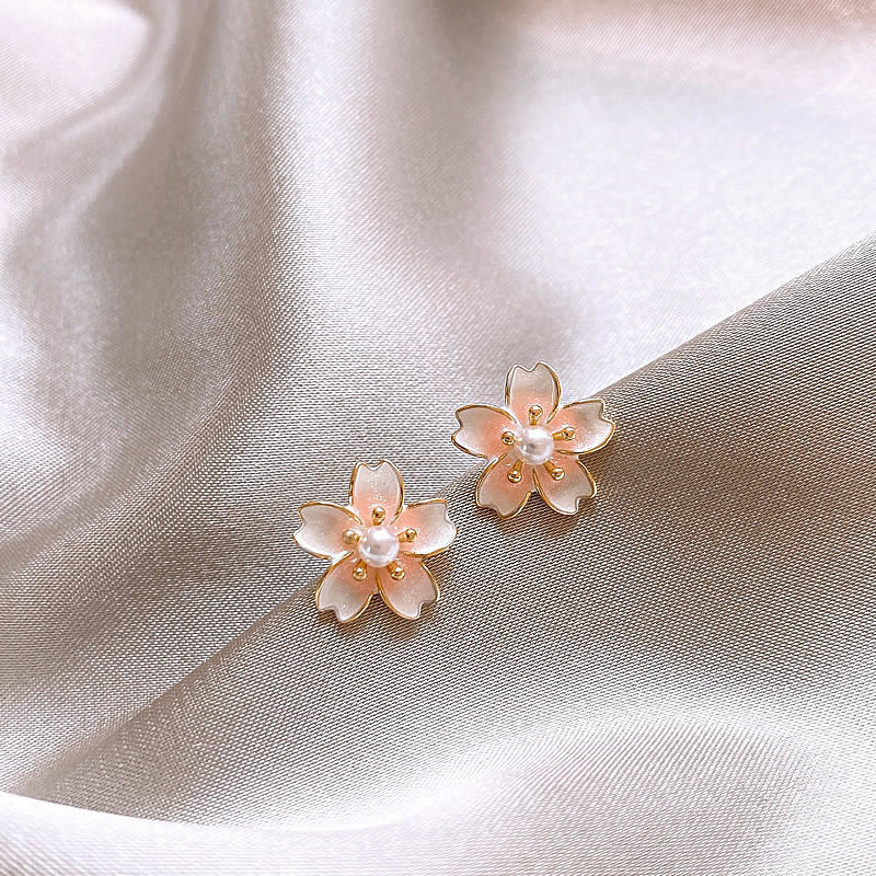 Wholesale Dropping Glaze Sniffy Peach Blossom Pearl Earrings