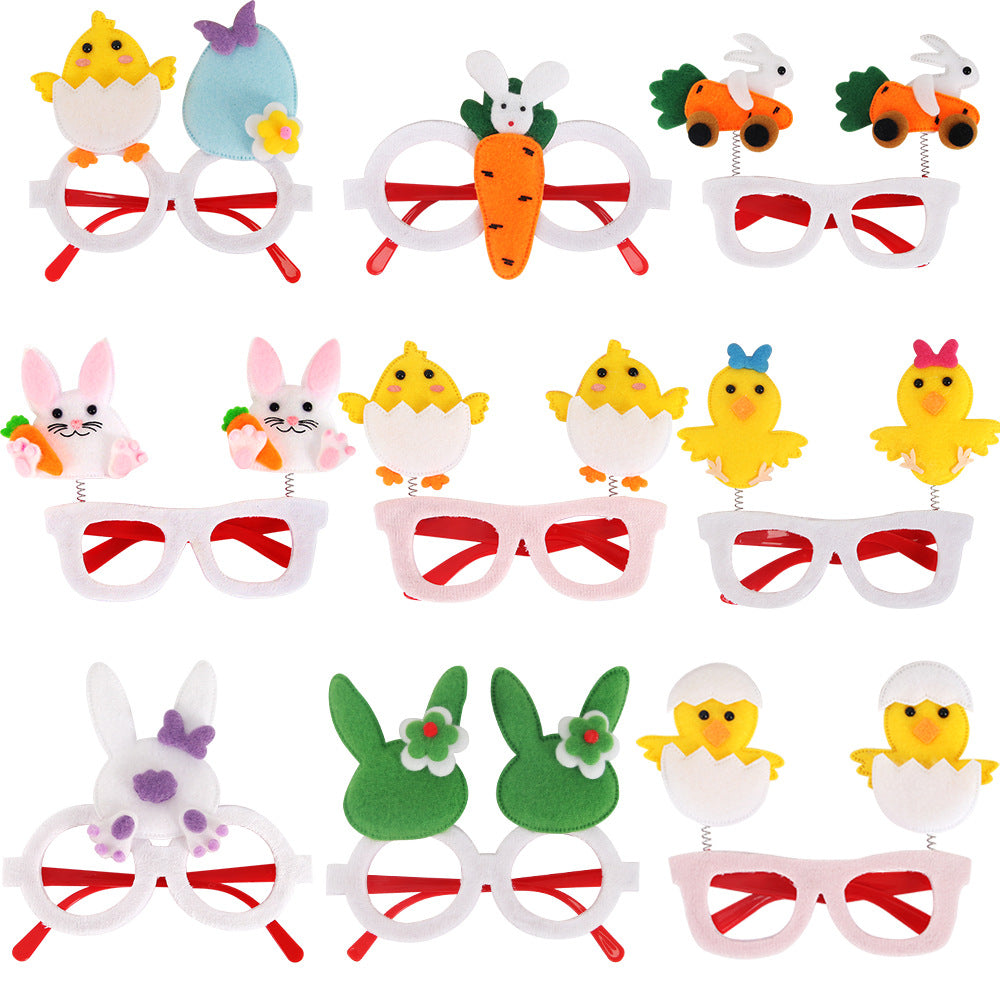 Wholesale Easter decorations flannel chicken rabbit photo glasses decoration