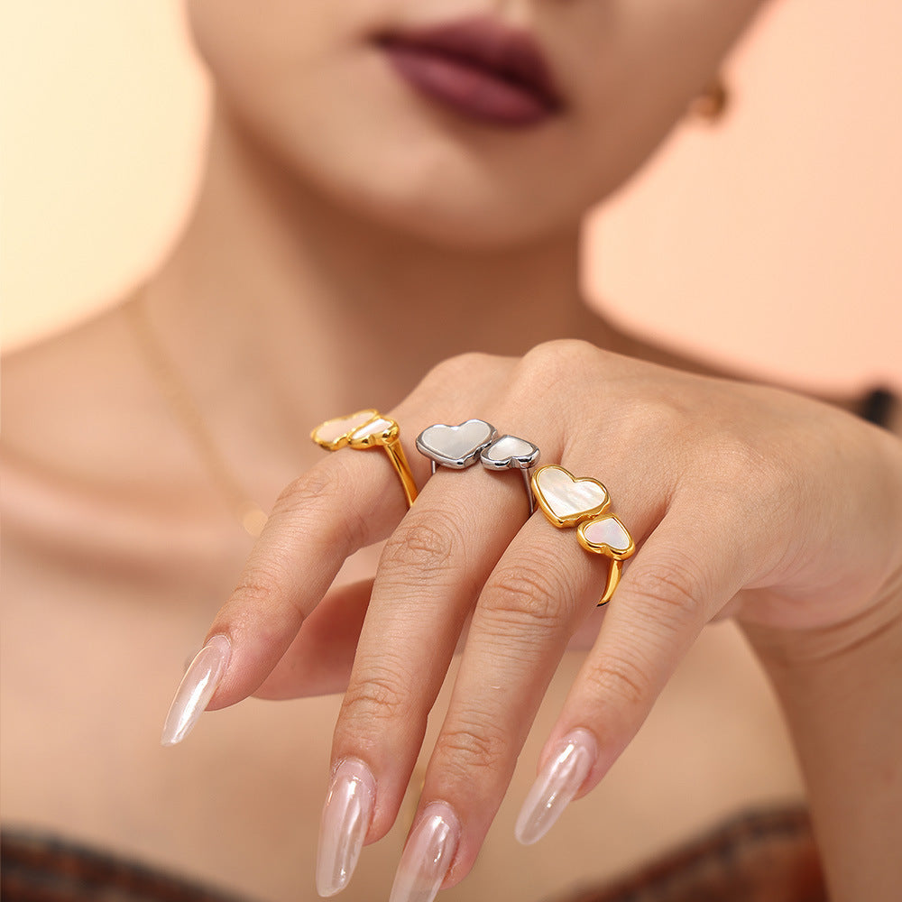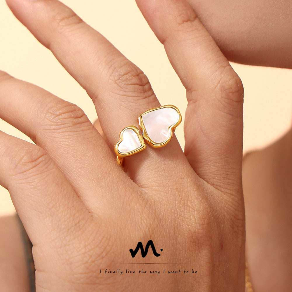 Wholesale Titanium Steel heart-to-heart natural fritillary opening ring