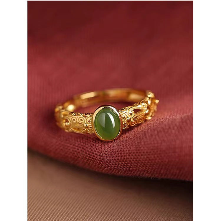 Wholesale Method Golden Flower Silk Chalcedony Adjustable Ring