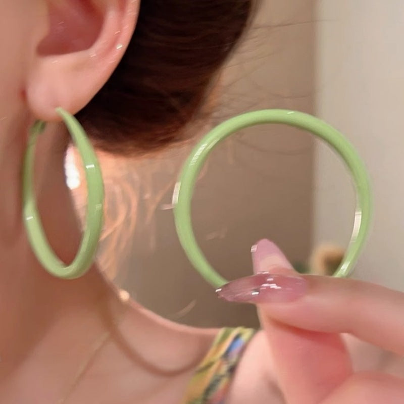 Wholesale Mint Milk Green Glaze Large Circle Earrings