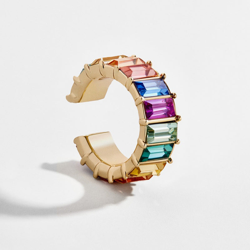 Wholesale multi-color glass diamond jewelry simple C- shaped earrings