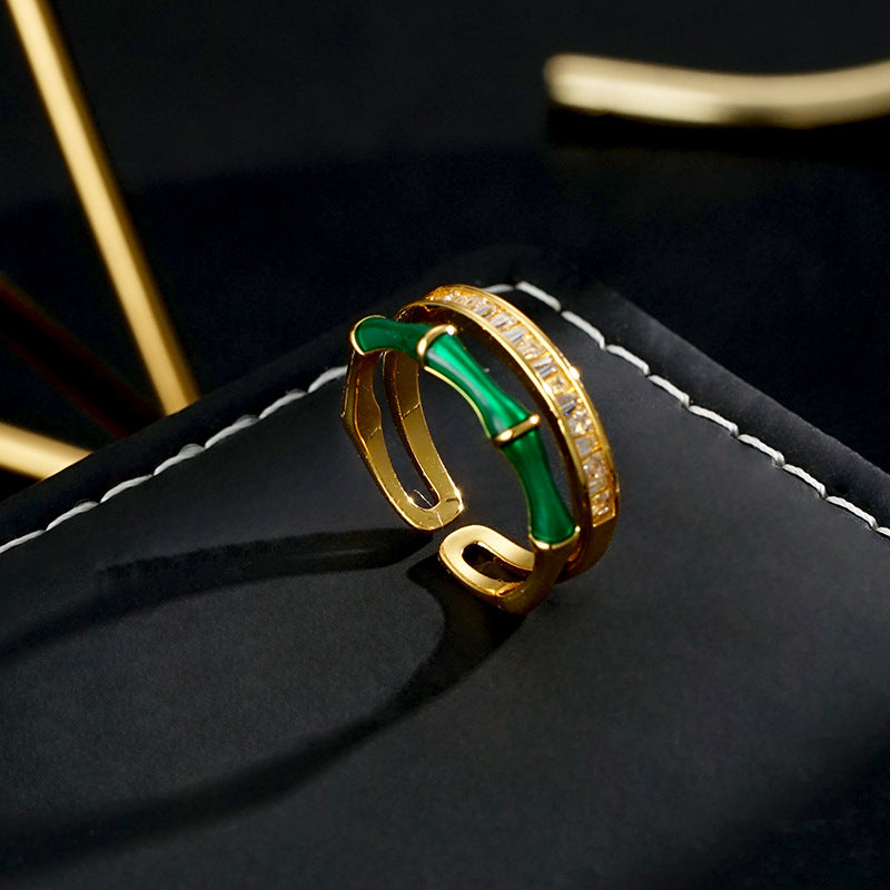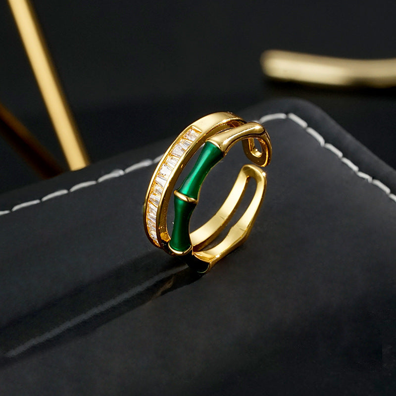 Wholesale Oil Dropping Green Bamboo Set Zircon Opening Ring