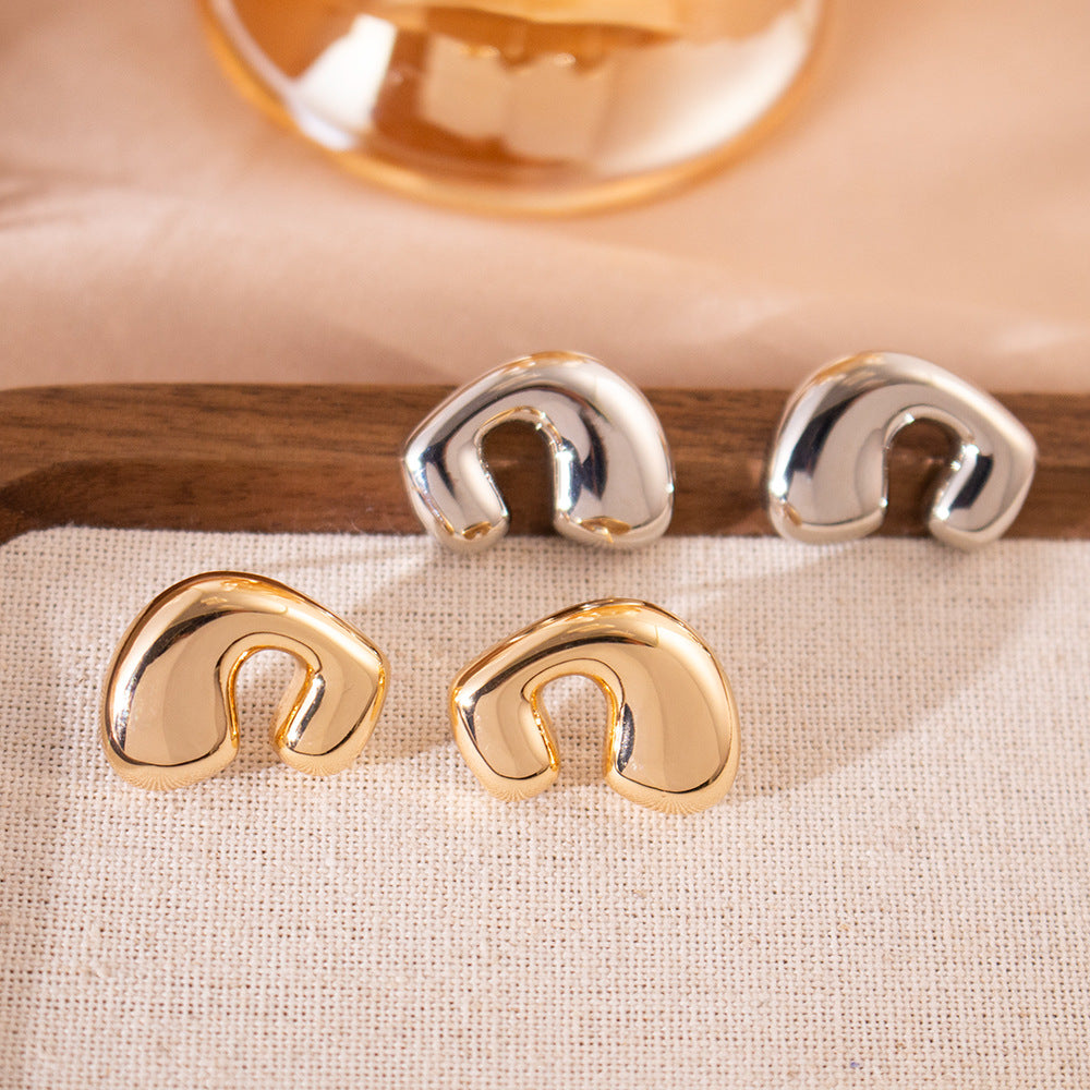 Wholesale Real gold plating irregular letter C- shaped earrings