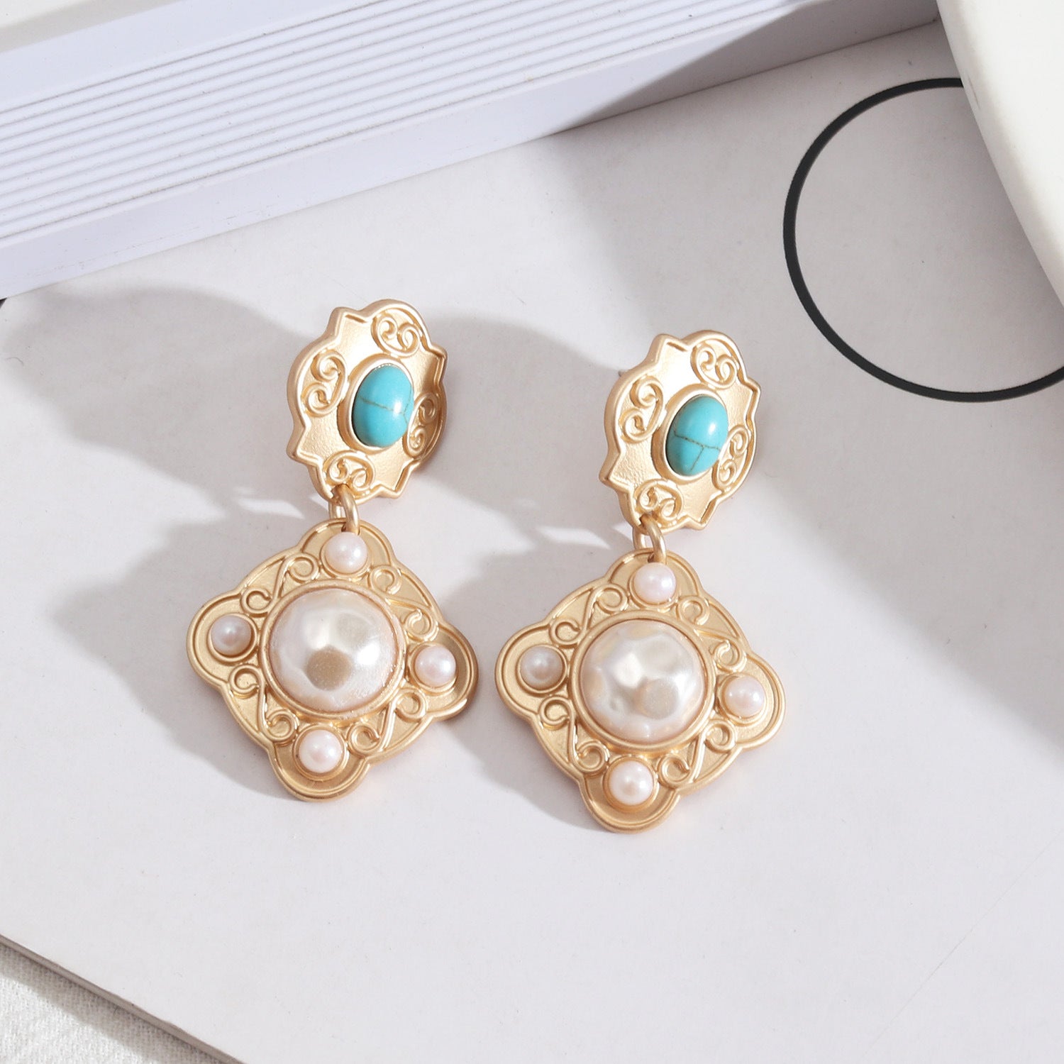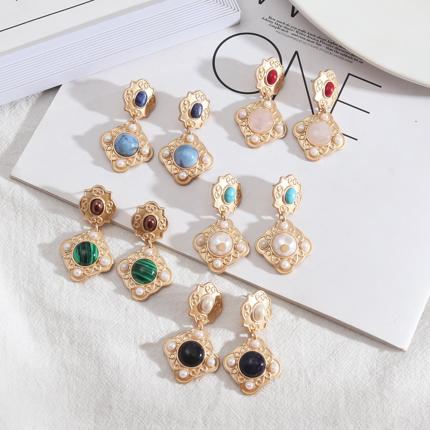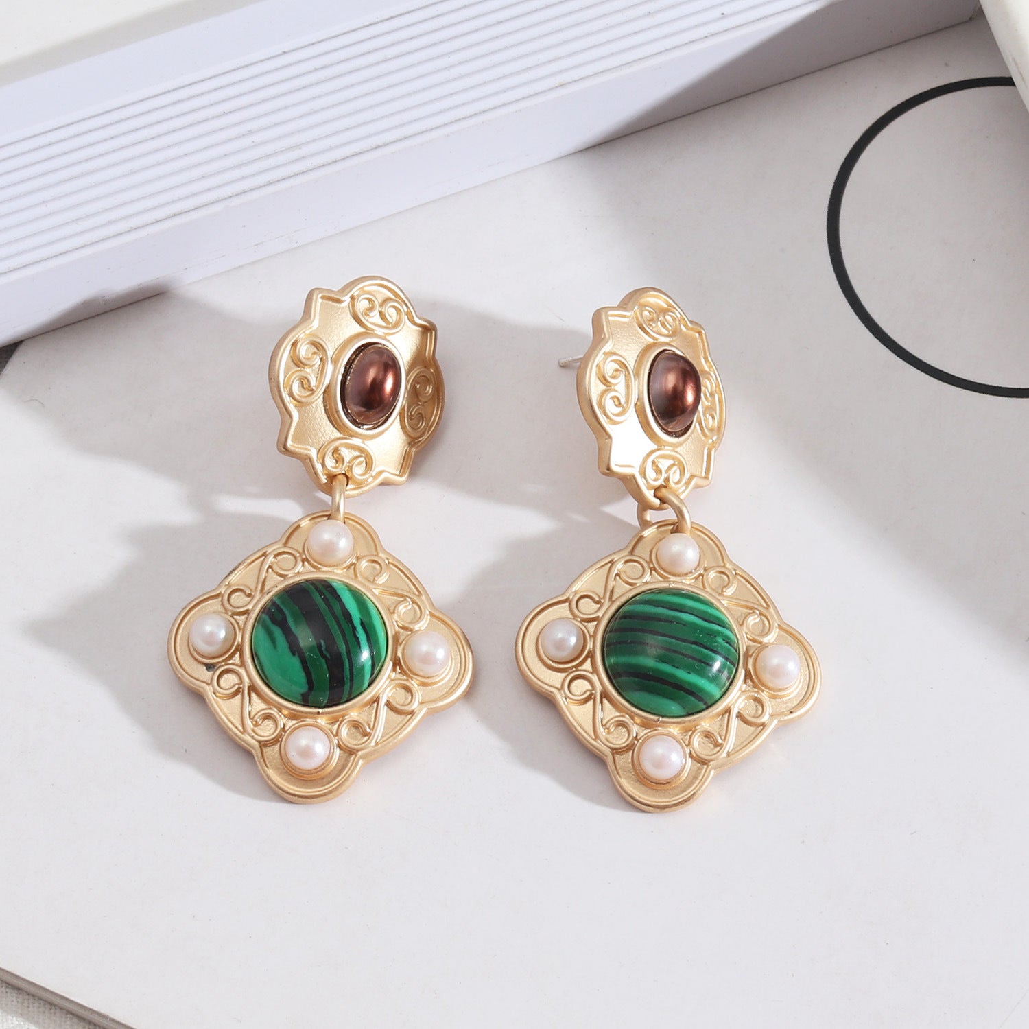 Wholesale Retro Glaze Gold Personality Exaggerated Silver Needle Middle Ancient Earrings