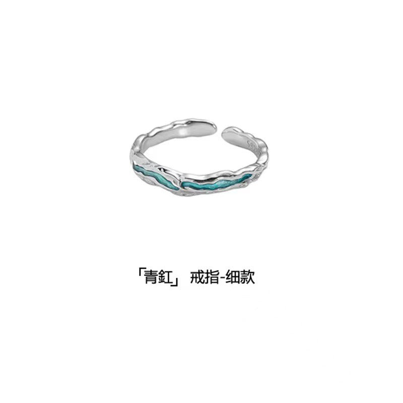 Wholesale Retro open ring Green red epoxy irregular texture ring