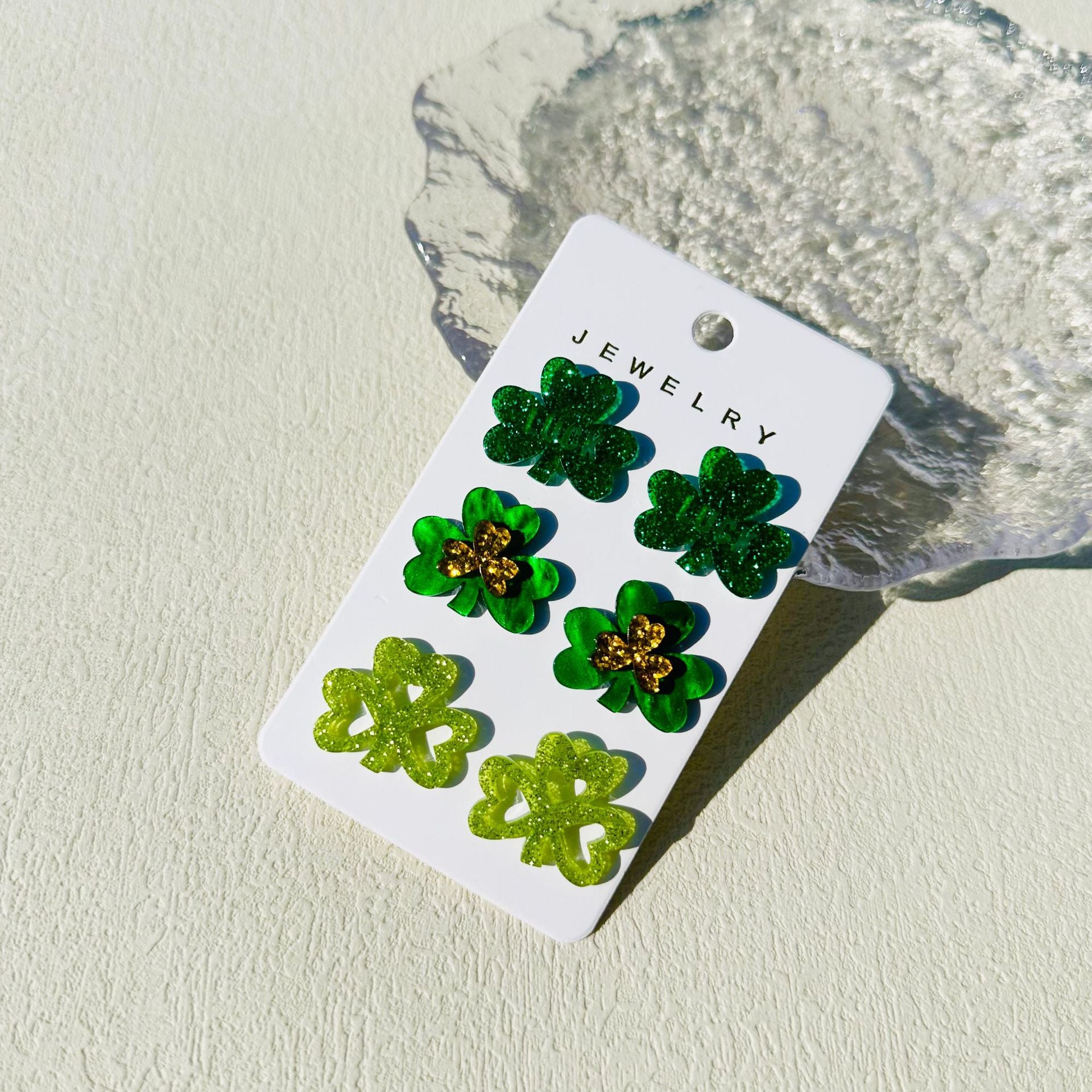 Wholesale 3pcs/set St. Patrick's Day clover green luck acrylic earrings