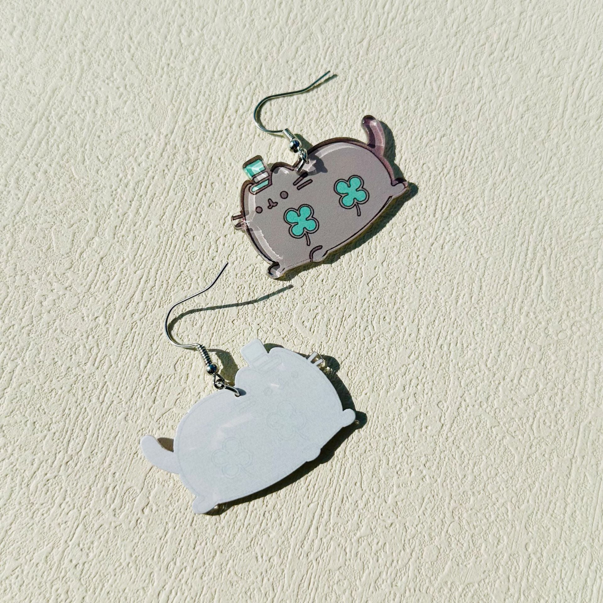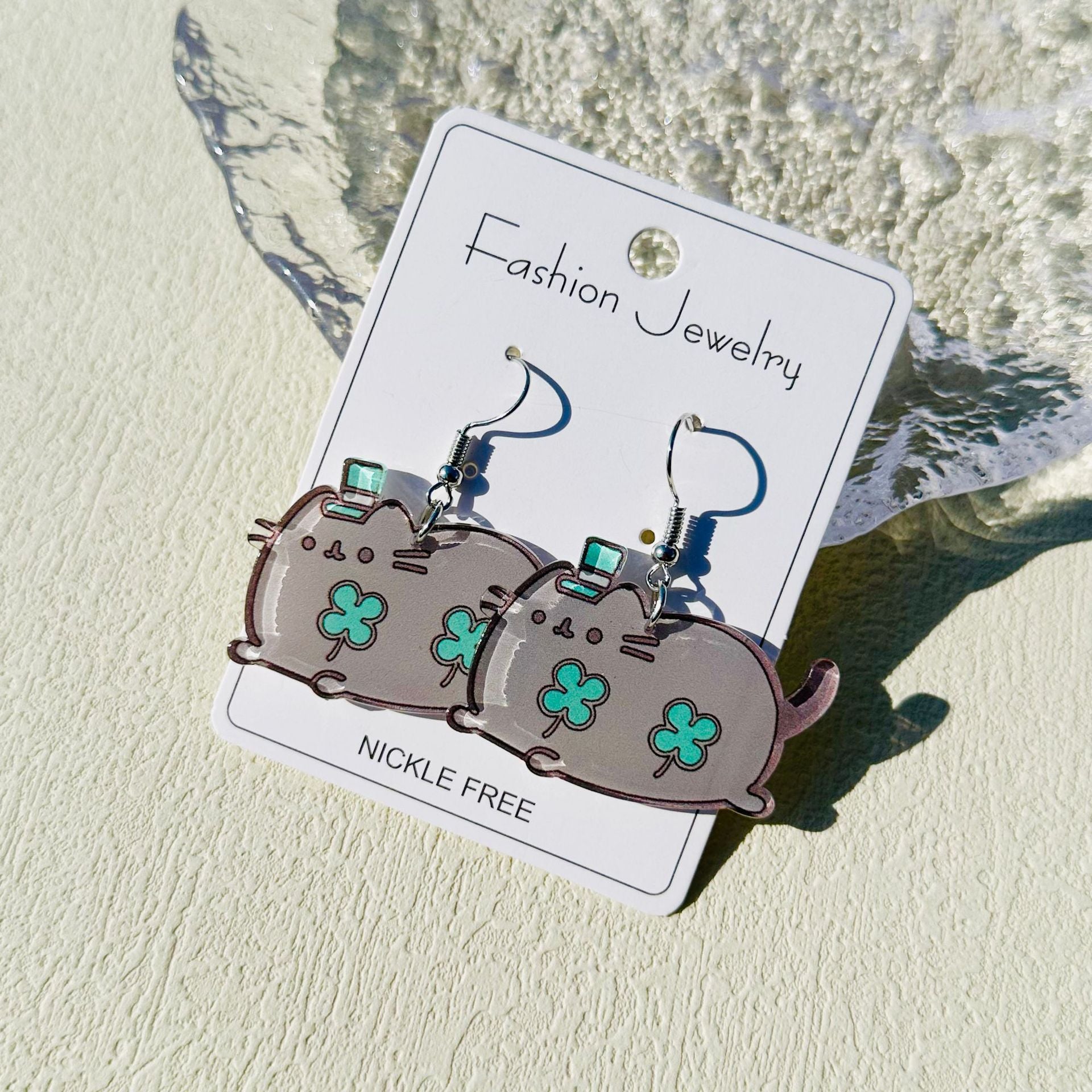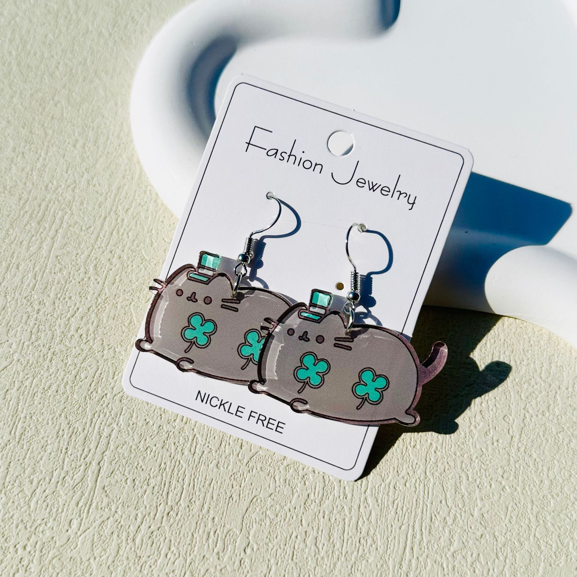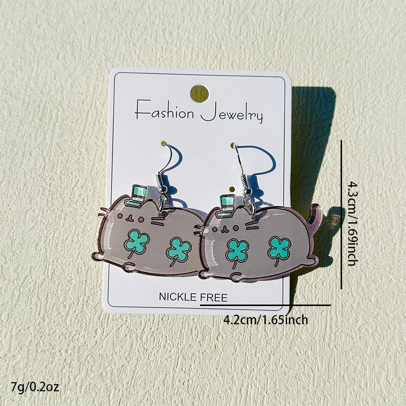 Wholesale St Patrick's Day clover green hat cat animal acrylic printing earrings