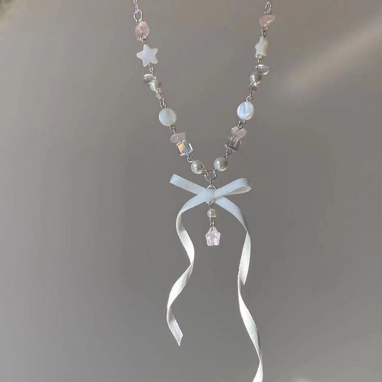Wholesale Strawberry bubble summer dopamine bow red heart sweet colorful beaded necklace