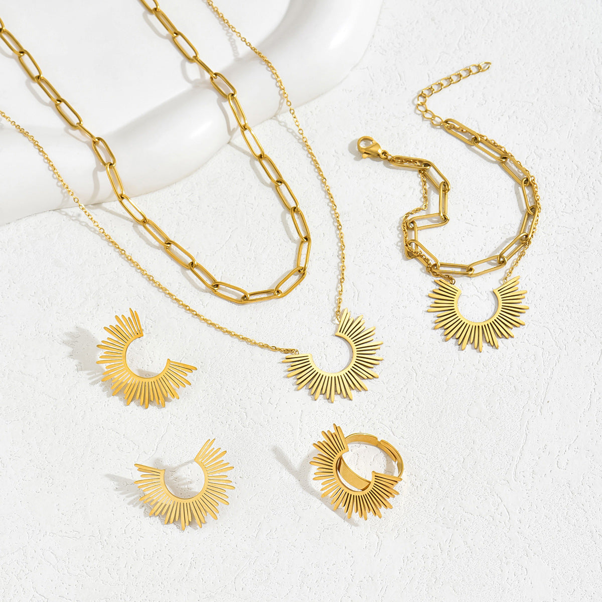 Wholesale Sunflower Trousers Necklace Ring Jewelry Set