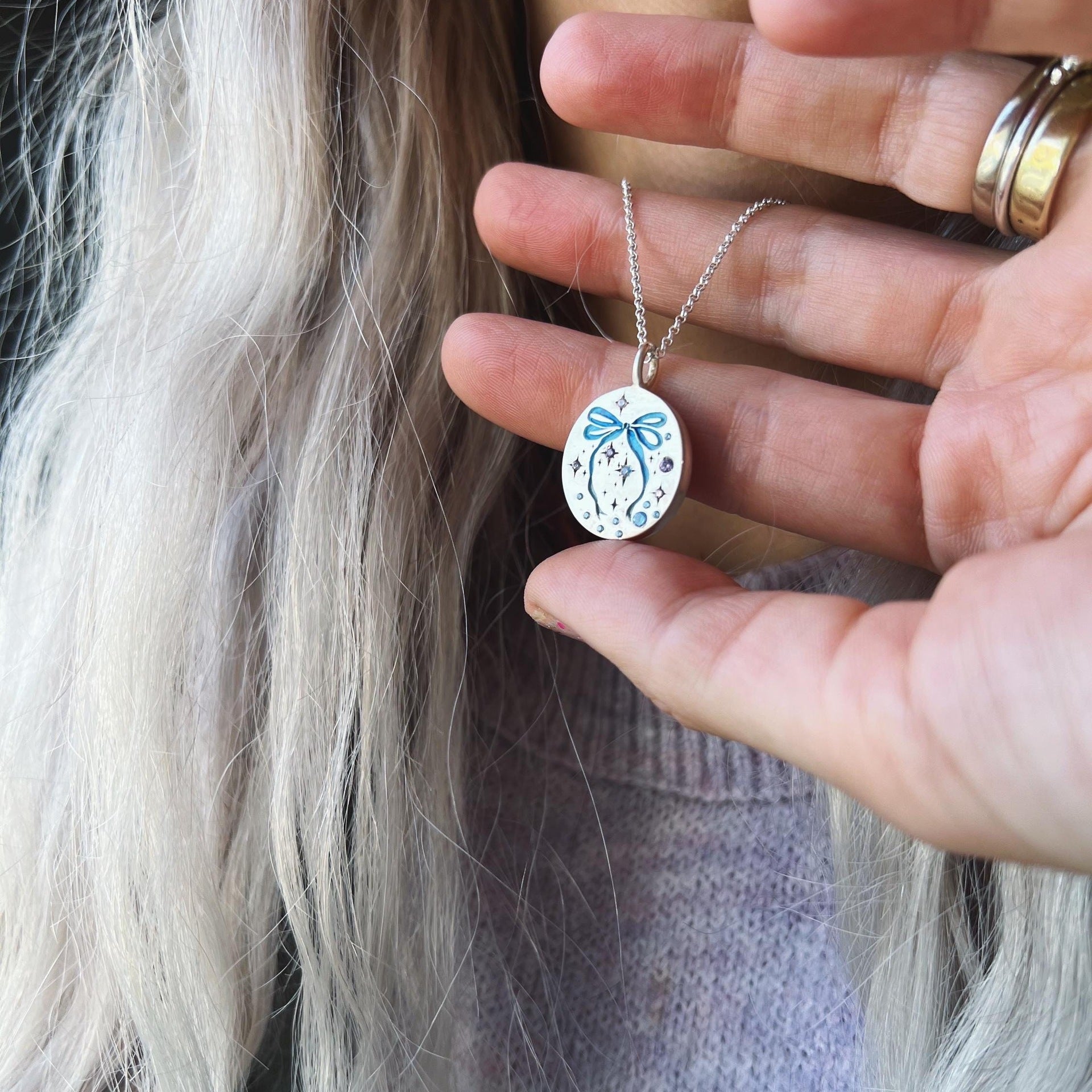 Wholesale Titanium Steel Bow Painted Oil Dropping Rabbit Element Pet Oval Tarot Necklace