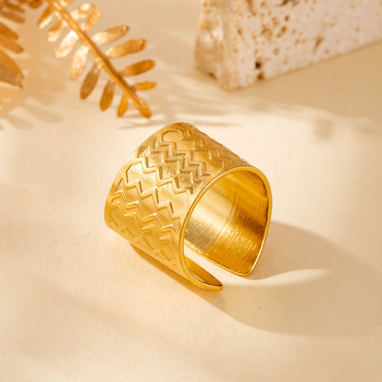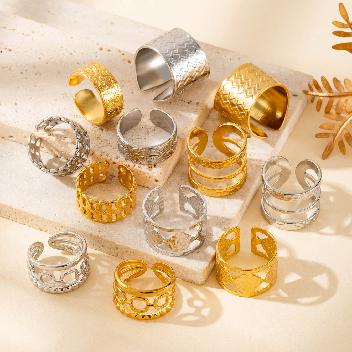 Wholesale Titanium steel exaggerated wide version fashion light luxury smooth metal line opening adjustable ring