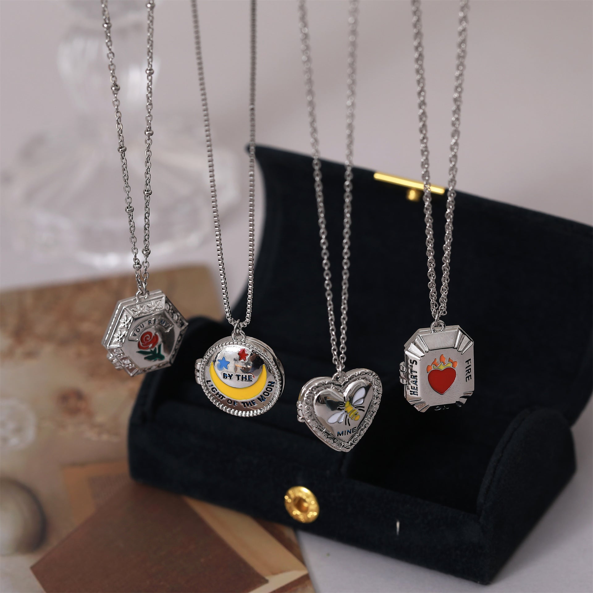 Wholesale y2g style necklace Women's Open and Close album Moon rose drop oil necklace
