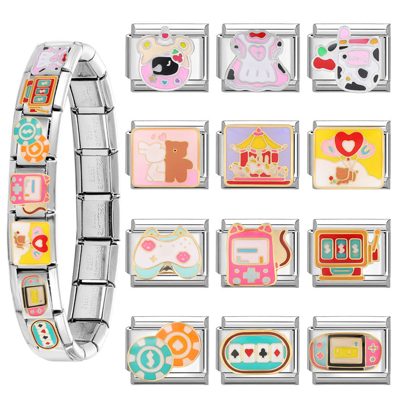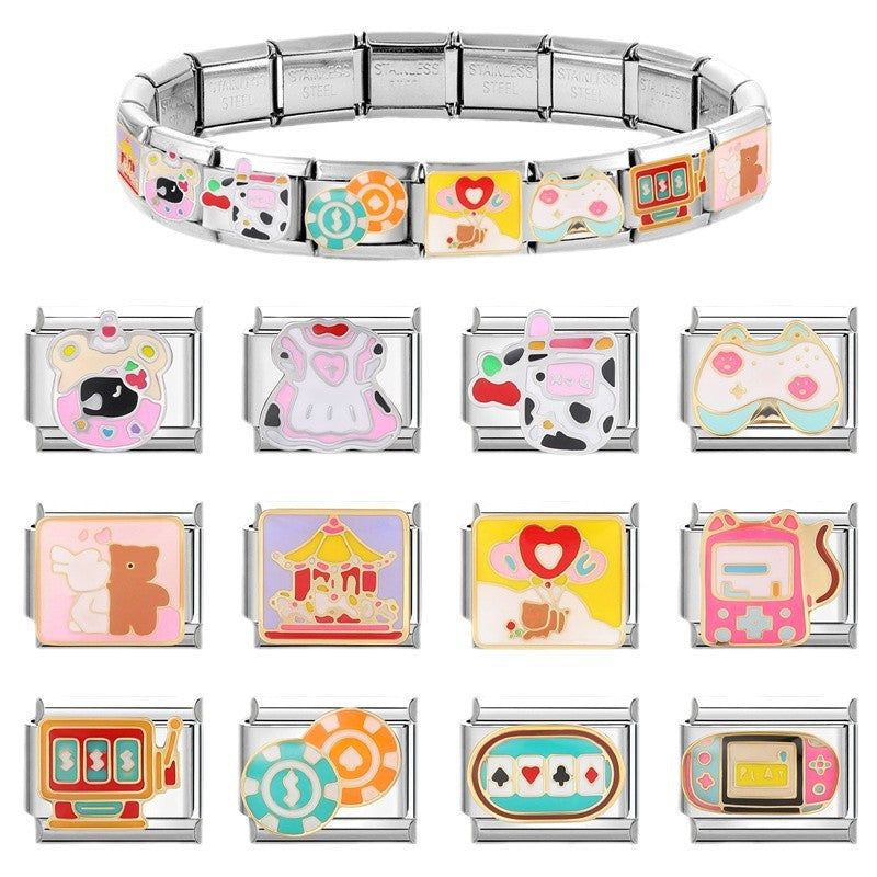 Wholesale Italian Beaded Bracelet 9mm DIY Splicing Removable Orange Game Series Titanium Steel Combinable Bracelet