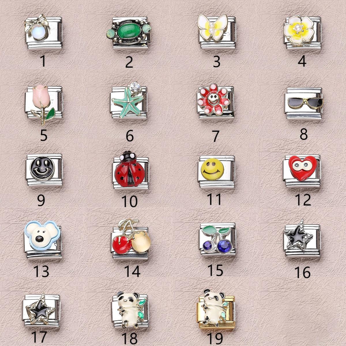 Pulsera de encanto italiano de 10 piezas al por mayor de 9 mm Diy Spliting Butterfly Ladybug Acero inoxidable Pulsero compuesto