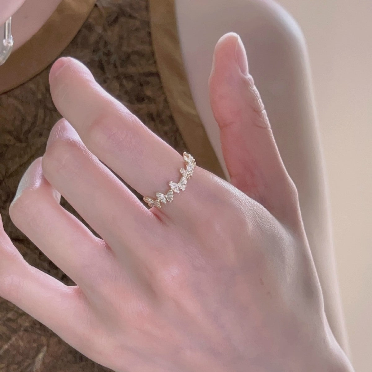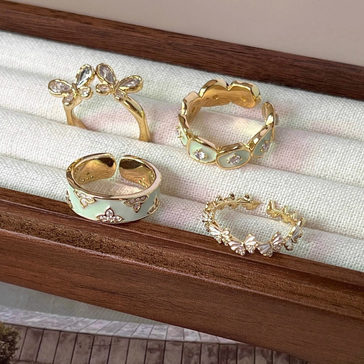 Wholesale Row Diamond Enamel Decoration Butterfly Four-leaf Clover Ring