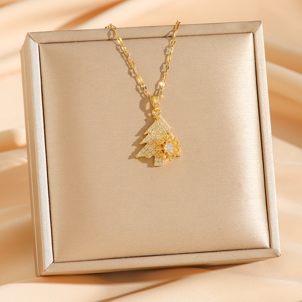 Wholesale Rotating Snowflake Christmas Tree Titanium Steel Necklace