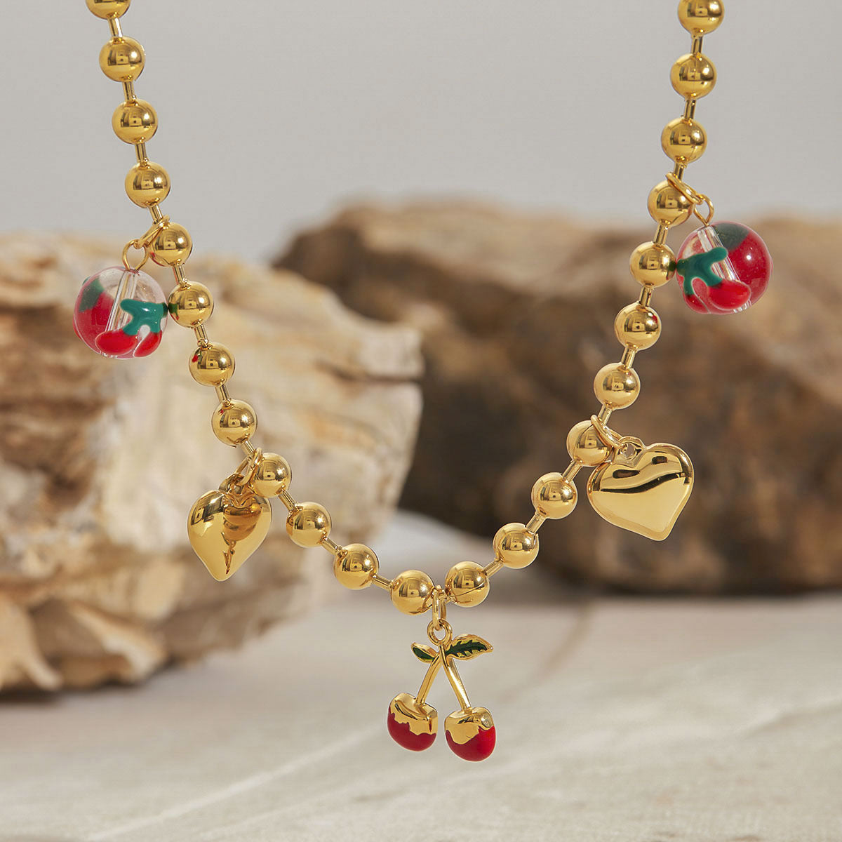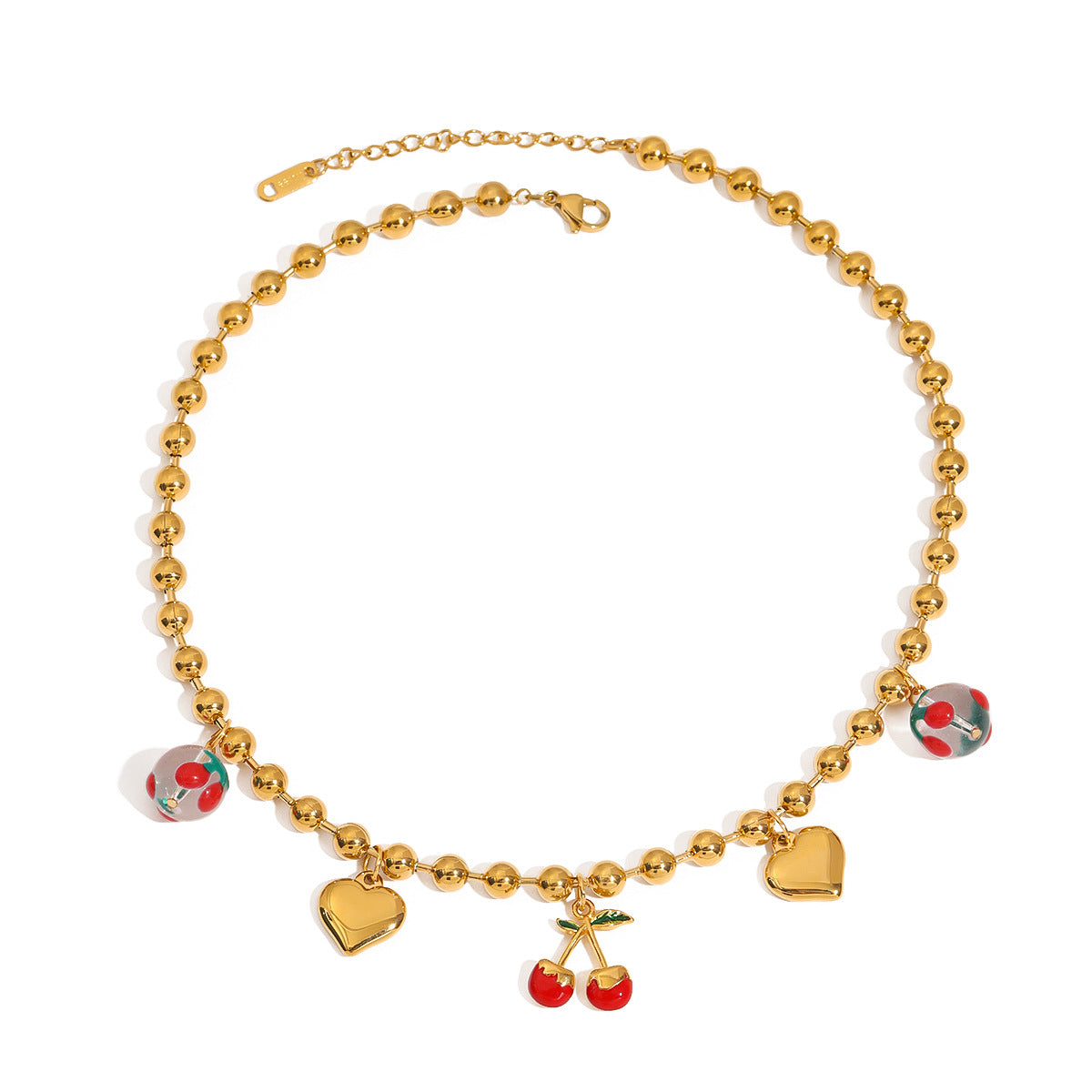 Wholesale 18K Gold Stainless Steel Love Heart Oil Drop Cherry Necklace