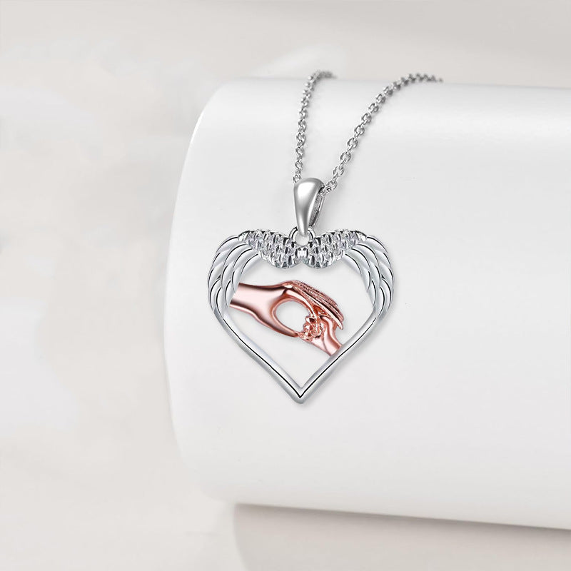 Wholesale Angel Wings Pendant Mother Plot Heart Necklace