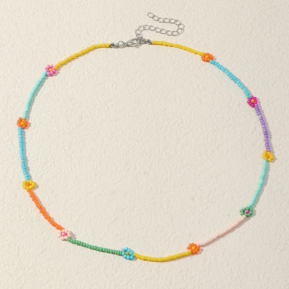 Wholesale Contrast Color Stitching Rice Bead Necklace Clavicle Chain