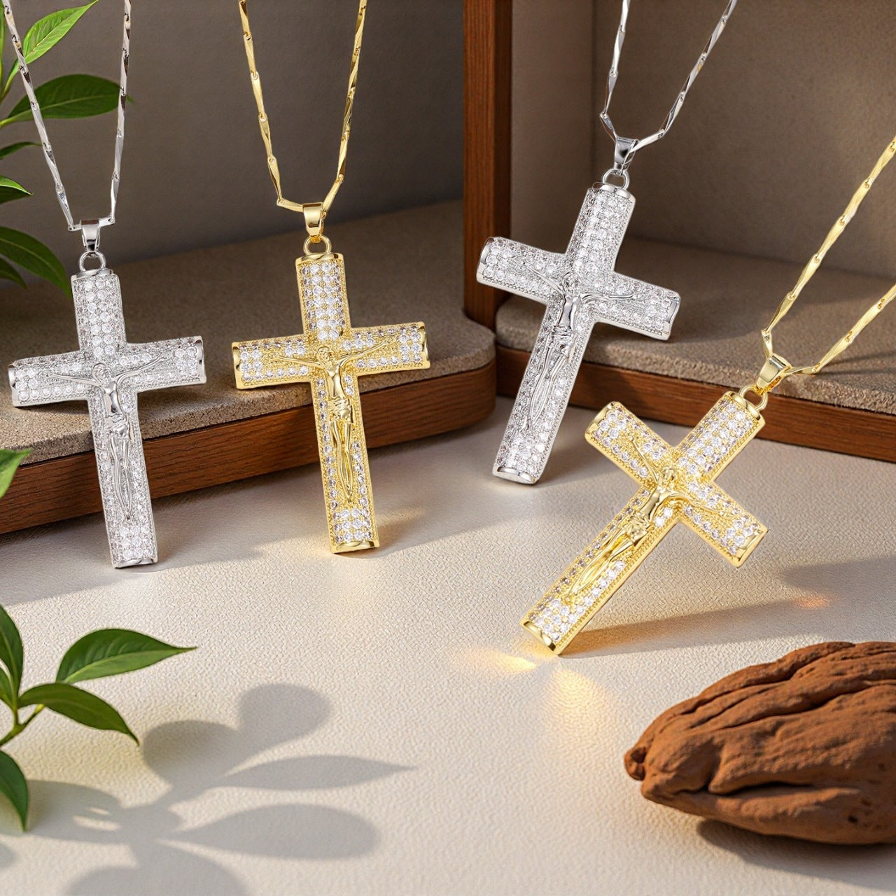 Wholesale Cross-Border Hot-Selling Fashionable Versatile Copper Inlaid Zircon Cross Pendant Necklace High-End Hip-Hop Portrait Necklace