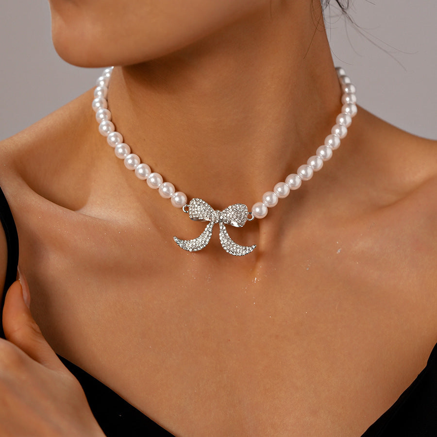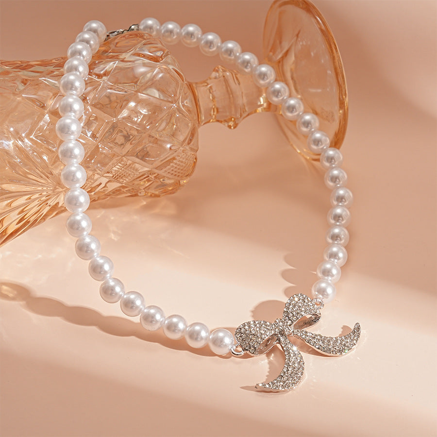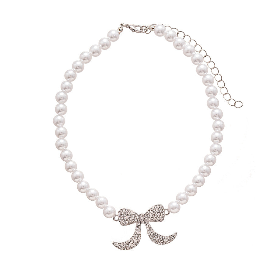 Wholesale Diamond and Pearl Bow Necklace