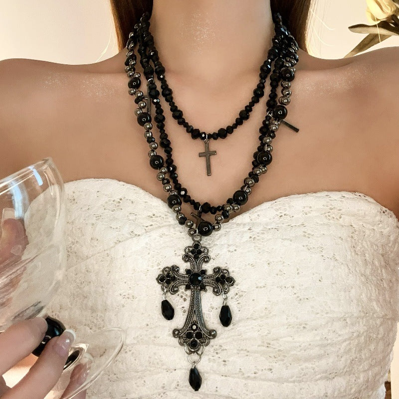 Wholesale Titanium Steel Necklace Gothic Punk Multilayer Choker Stacked Wear Retro Black Necklace