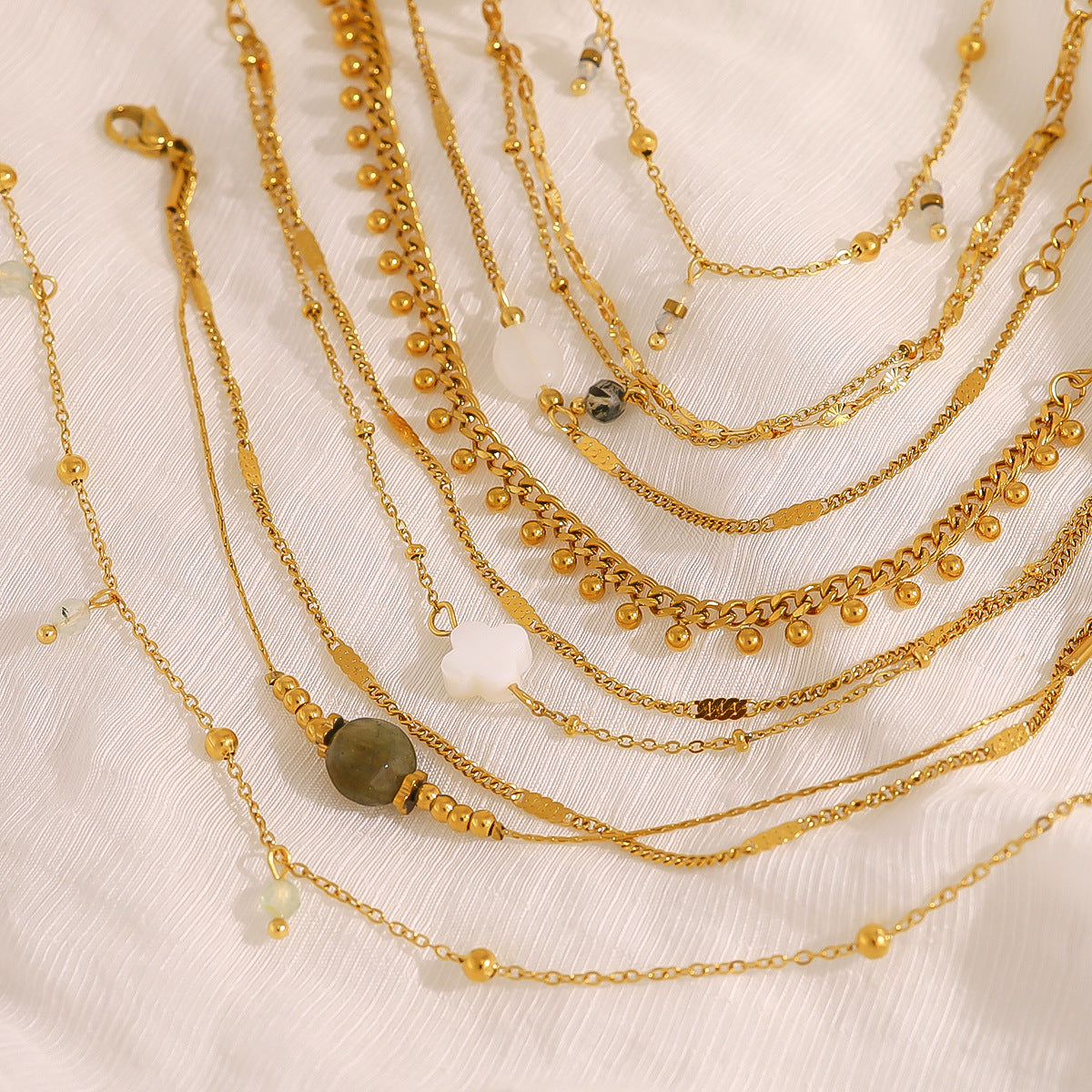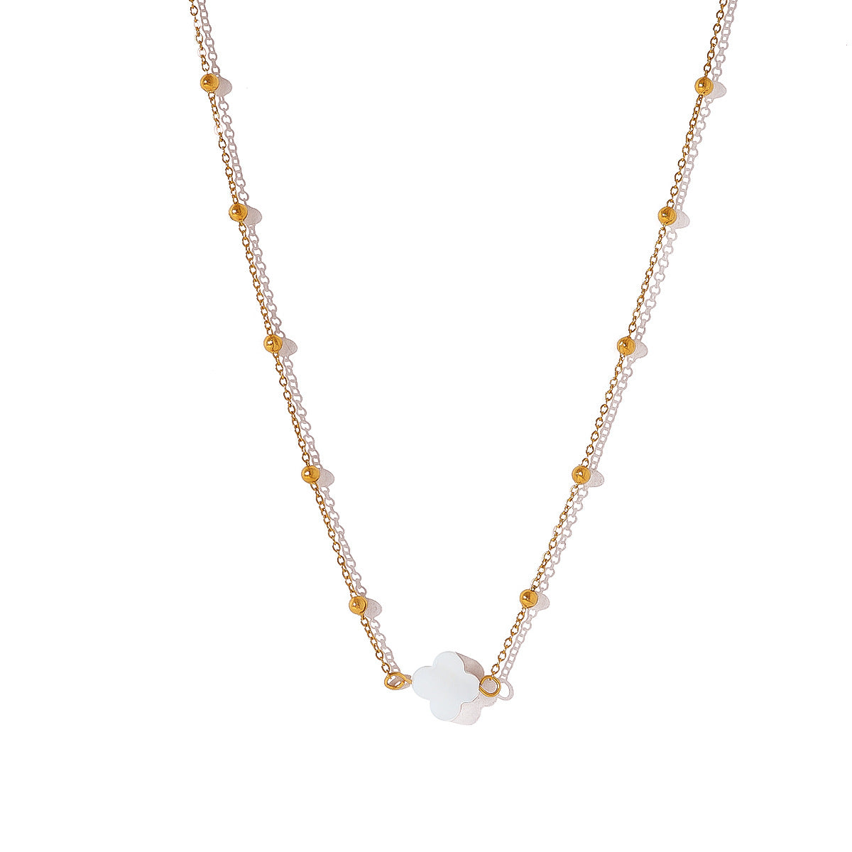 Wholesale Titanium Steel Stacked Bracelet suit Four-leaf Clover Natural Shell Pendant Bracelet suit