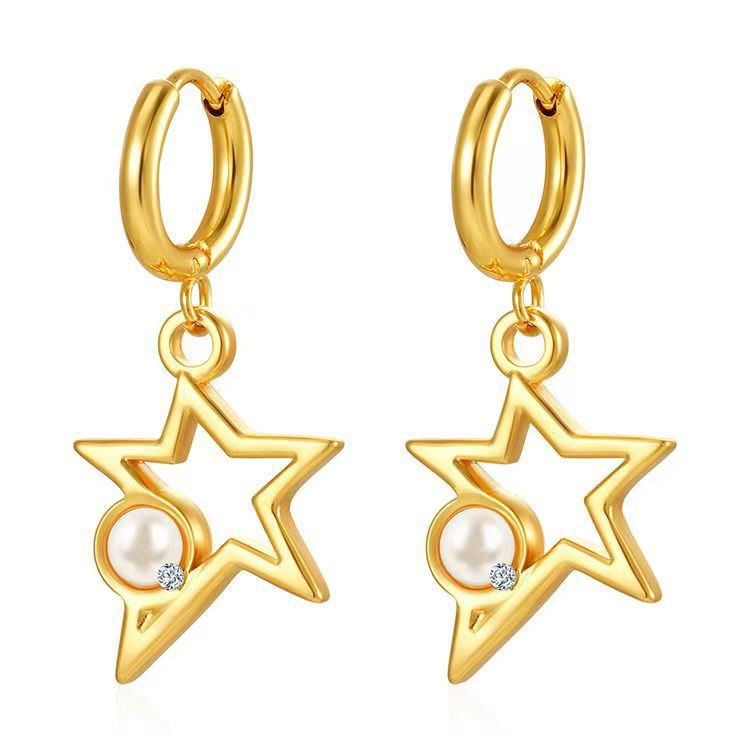 - Gold star-shaped earrings with beads