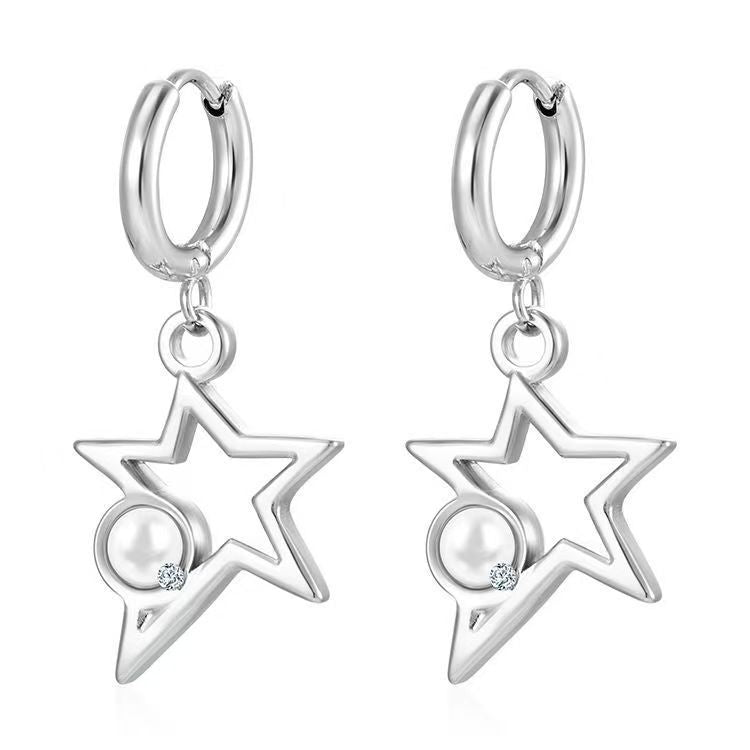 - Steel-colored star-shaped earrings with beads