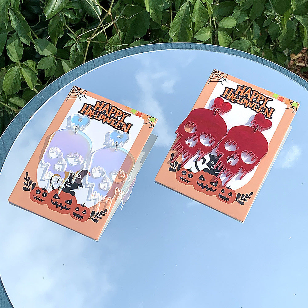 Wholesale Colorful Skull Earrings Radiation Love Skull Acrylic Earrings