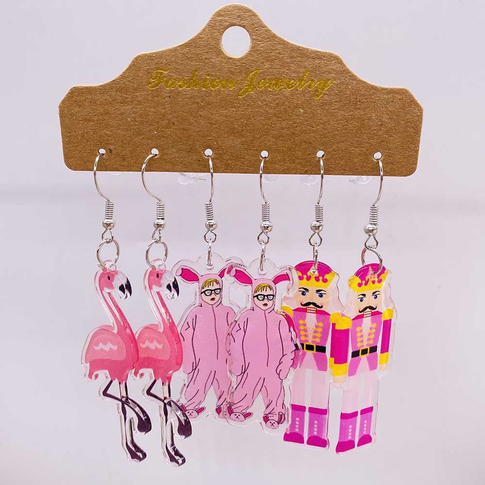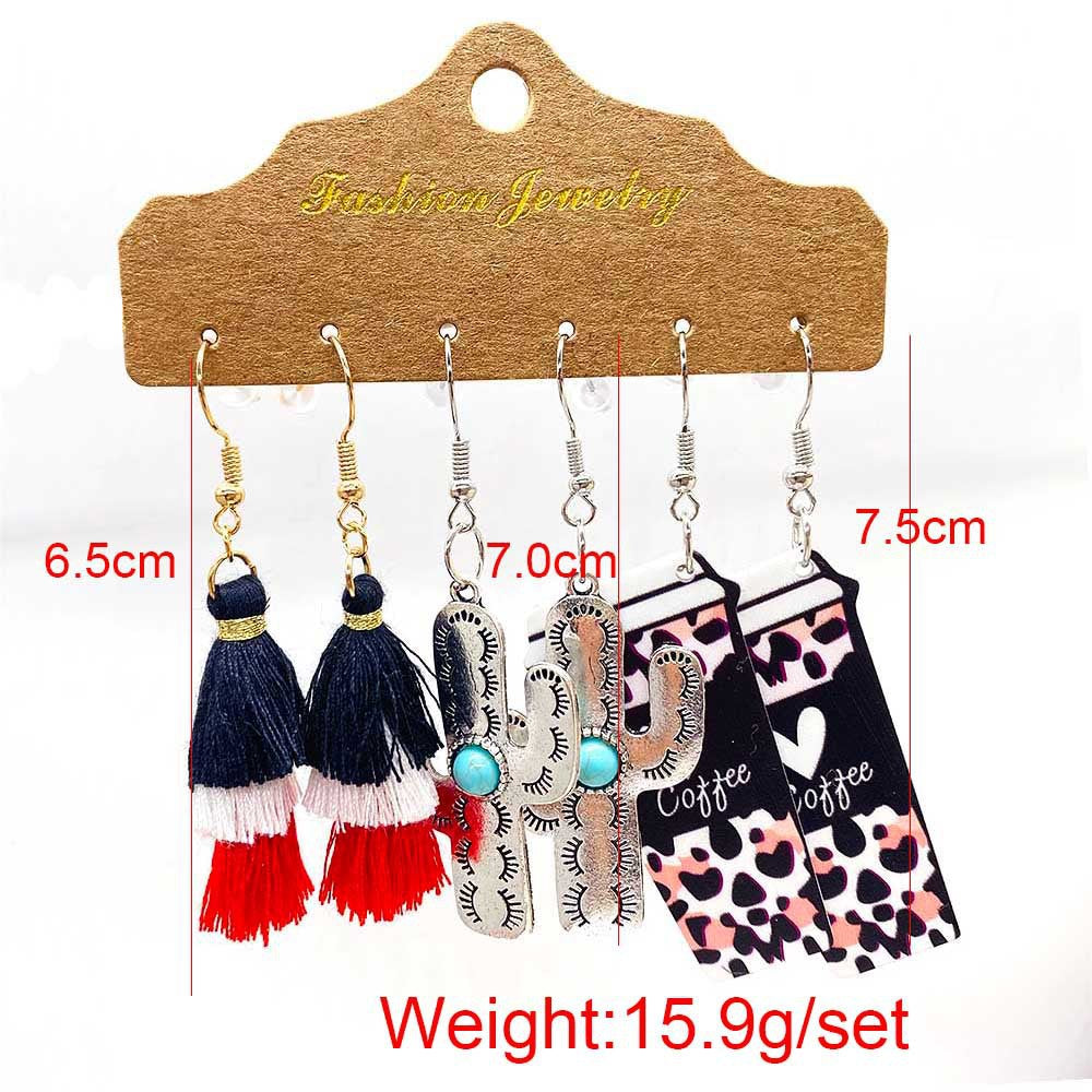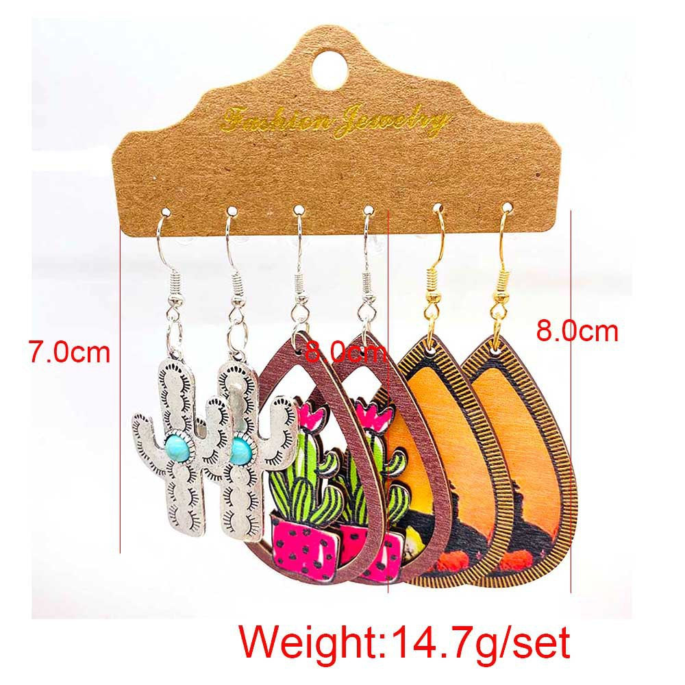 Wholesale 3 Pairs of One Card Earrings Set Cactus Acrylic Earrings