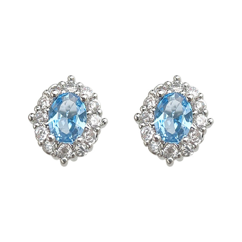 Wholesale Aquamarine zircon 925 silver needle earrings