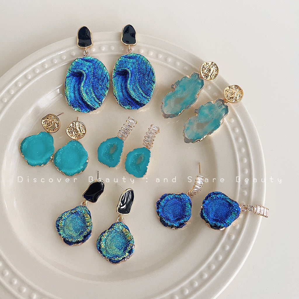 Wholesale Blue Sizzling Earrings Silver Needle Acrylic Earrings