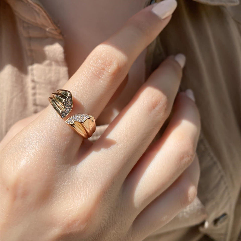 Wholesale butterfly ring inlaid zircon geometric open index ring