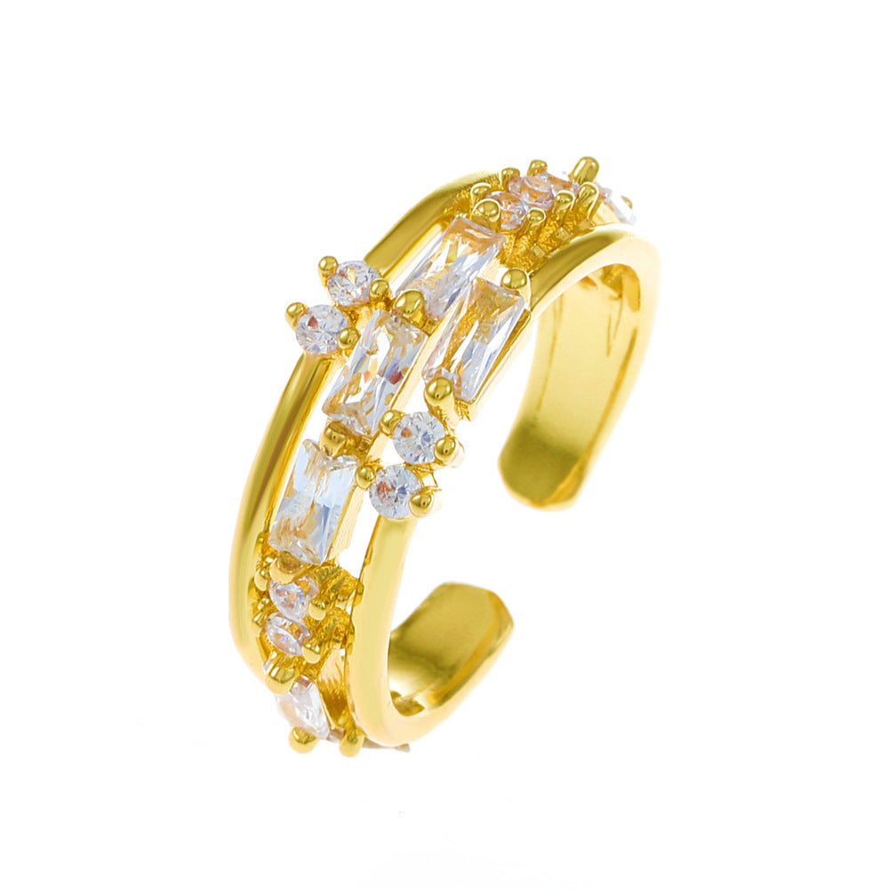 Wholesale copper inlaid zircon ring geometric open index finger ring